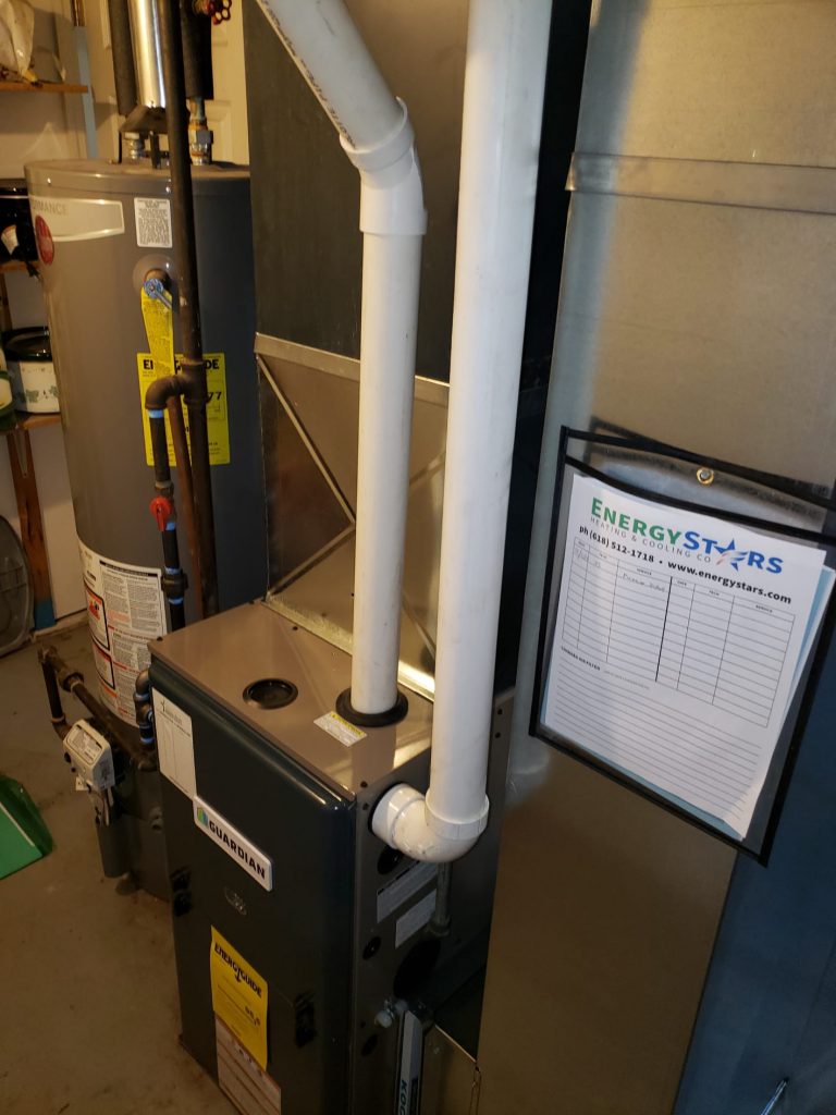 Finishing the install of a high efficiency Guardian furnace at a home in St. Louis! INSTALL GAS FORCED AIR FURNACE – 95% INSTALL PROGRAMMABLE STAT, REPLACE COLD AIR DROP, LEFT EXTRA AIR FILTERS, CLEAN AND TUNE GAS WATER HEATER. “Very professional, great service.” Robert – St. Louis, MO 63138