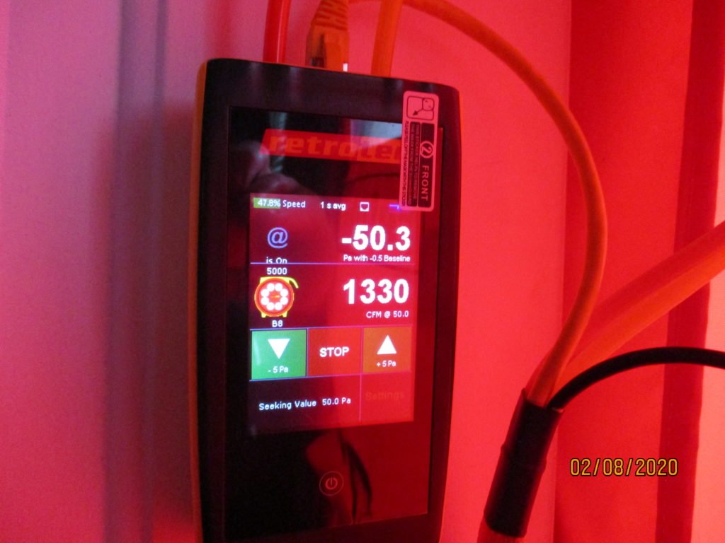 Performing final testing for Illinois Home Efficiency Program including blower door and combustion safety testing.